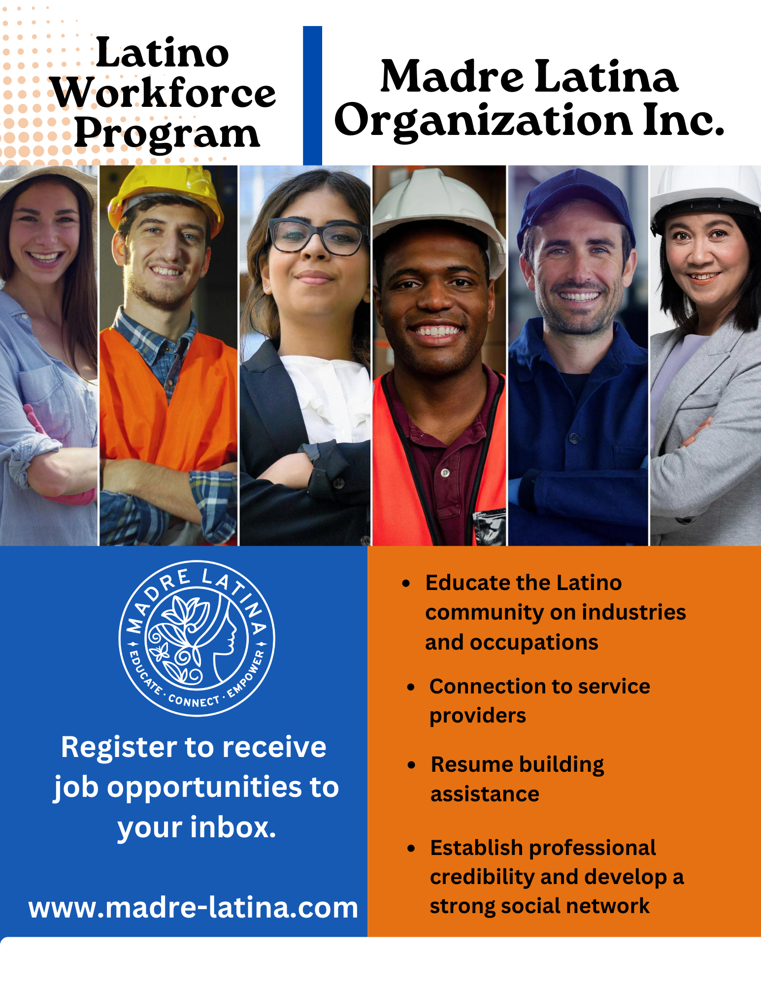 Rooted in unwavering dedication, Madre Latina Organization Inc. strives to equip Latinas with the essential tools required to elevate their careers, businesses, and overall quality of life.